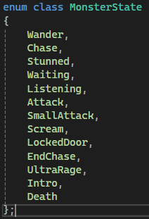 And finally this state is triggered at the end of the chase sequence at the end of the game making the monster jump to its death.